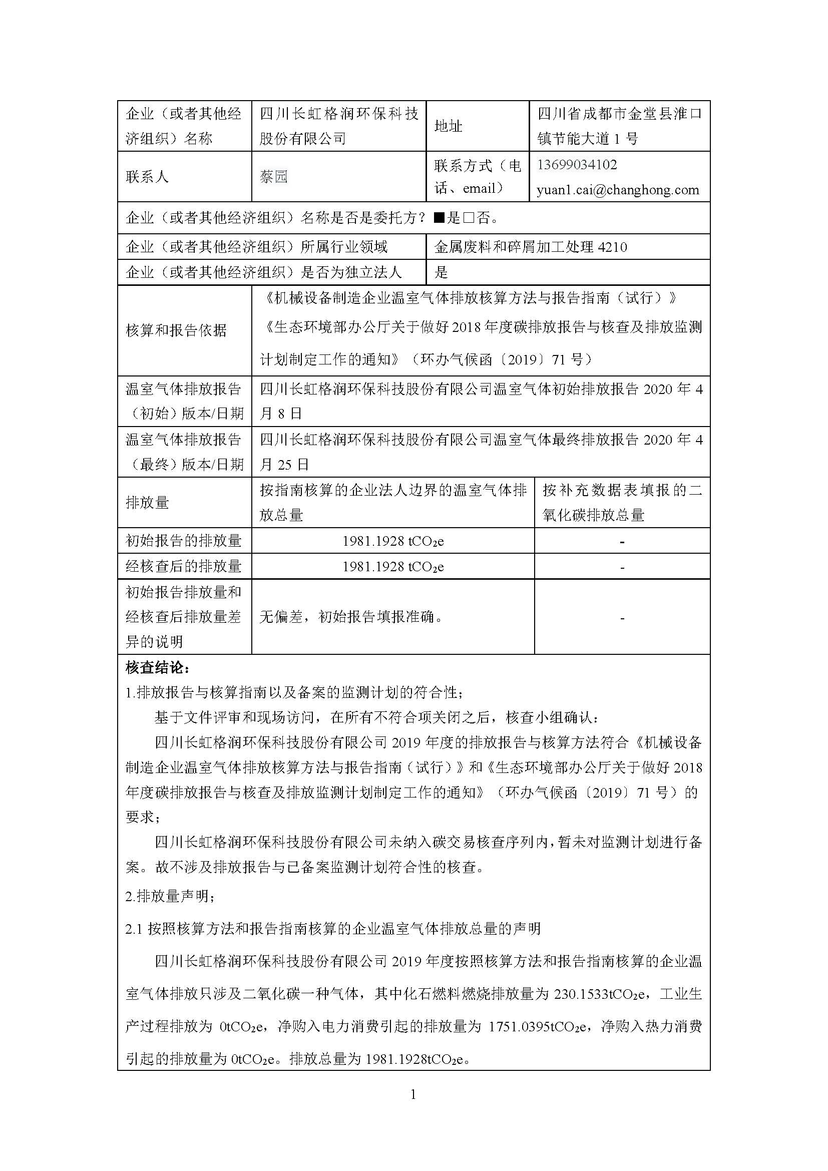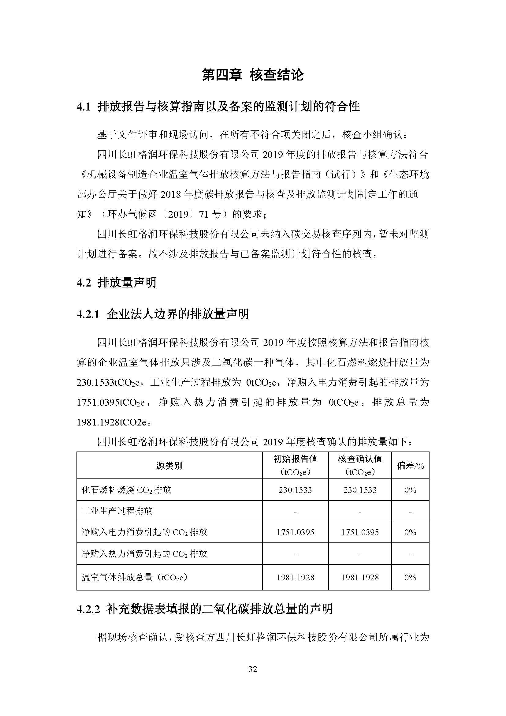 四川長虹格潤環(huán)保科技股份有限公司2019年溫室氣體排放排查報告