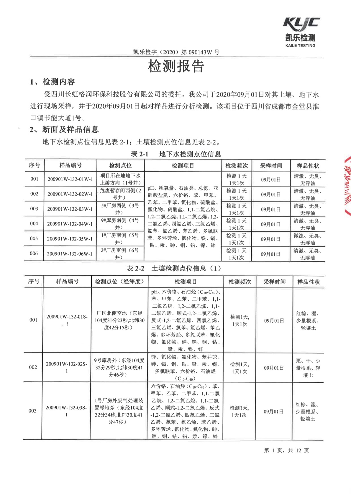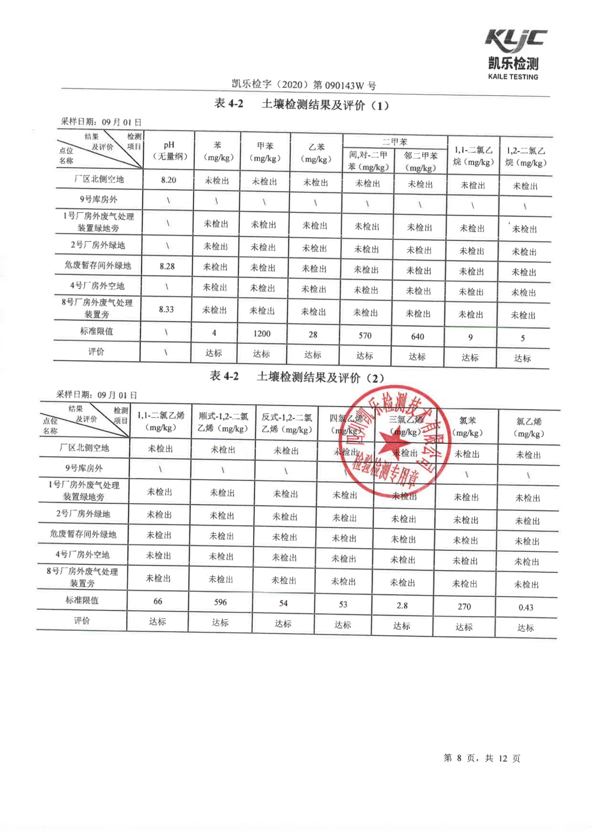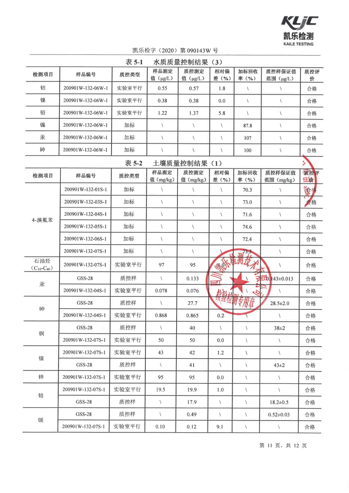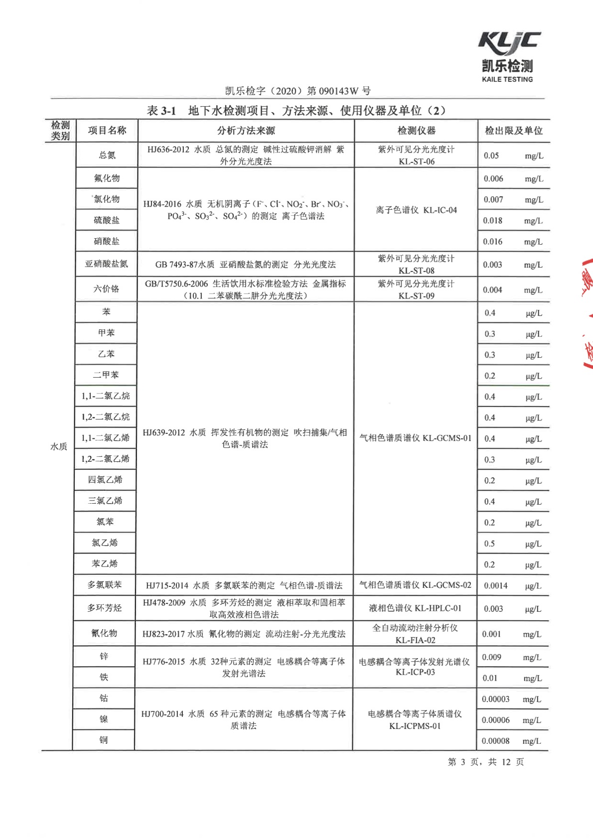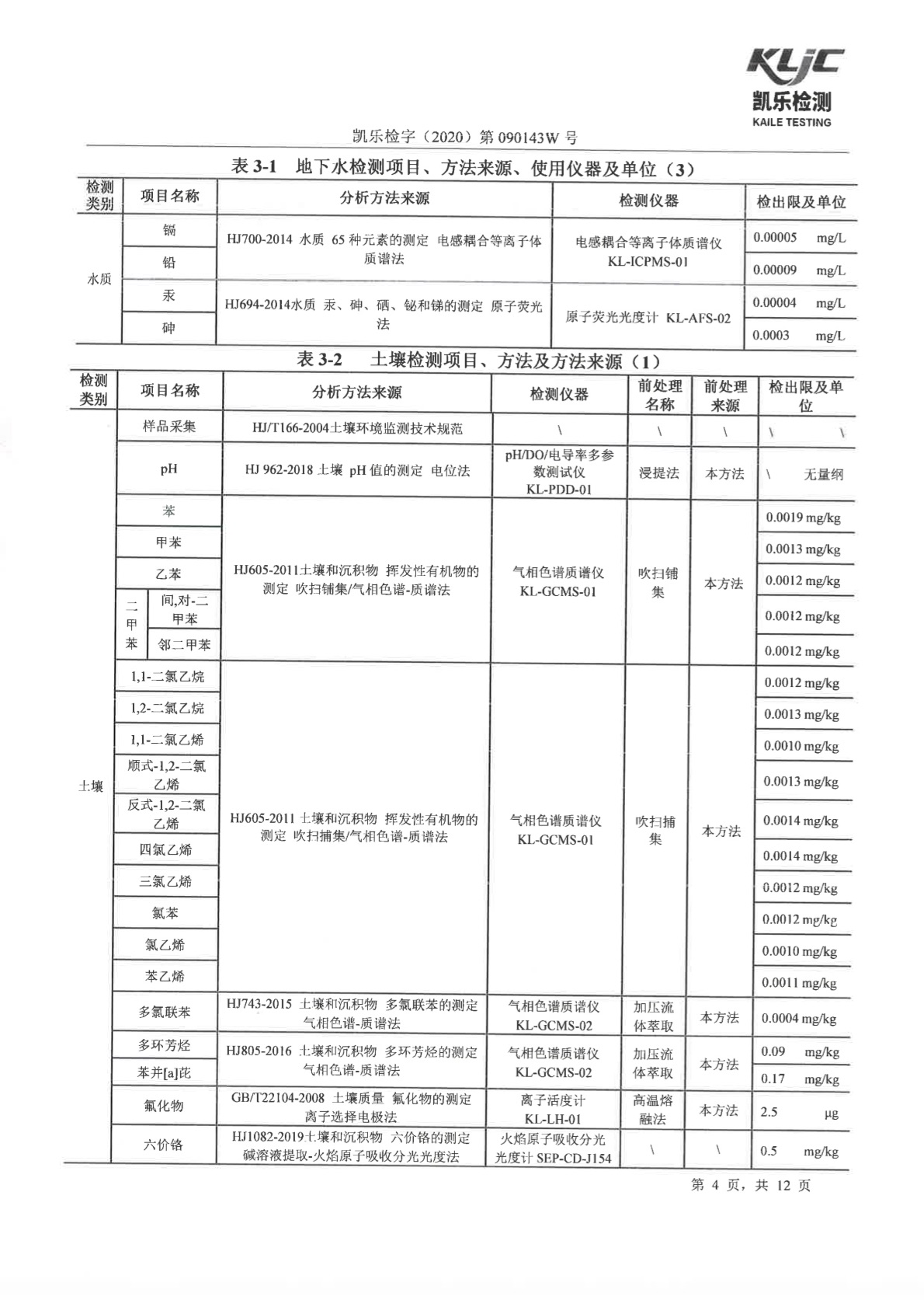 凱樂(lè)檢字(2020)第090143W號(hào)(土壤、地下水檢測(cè))