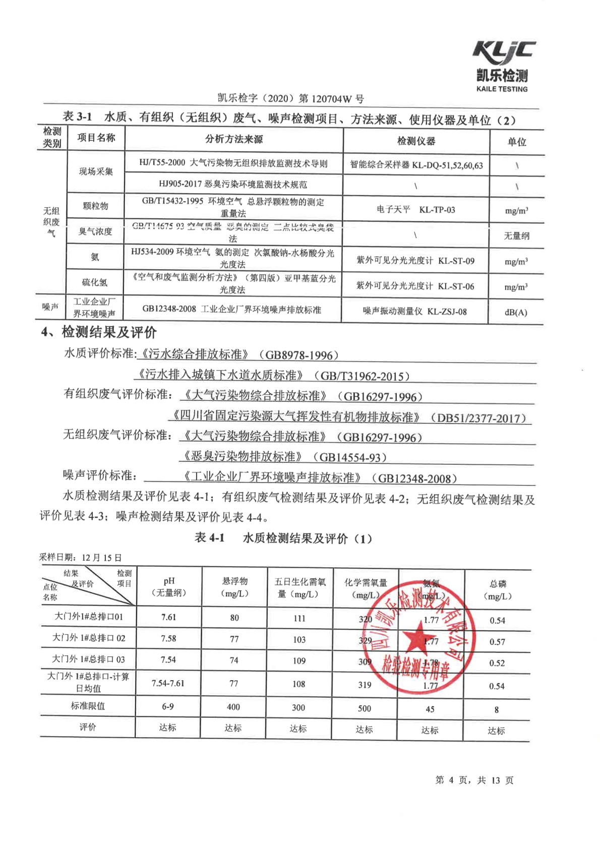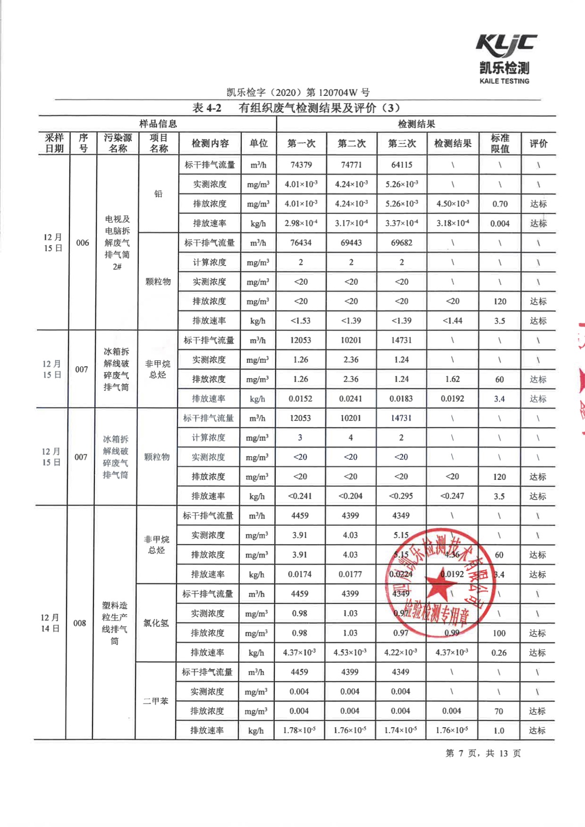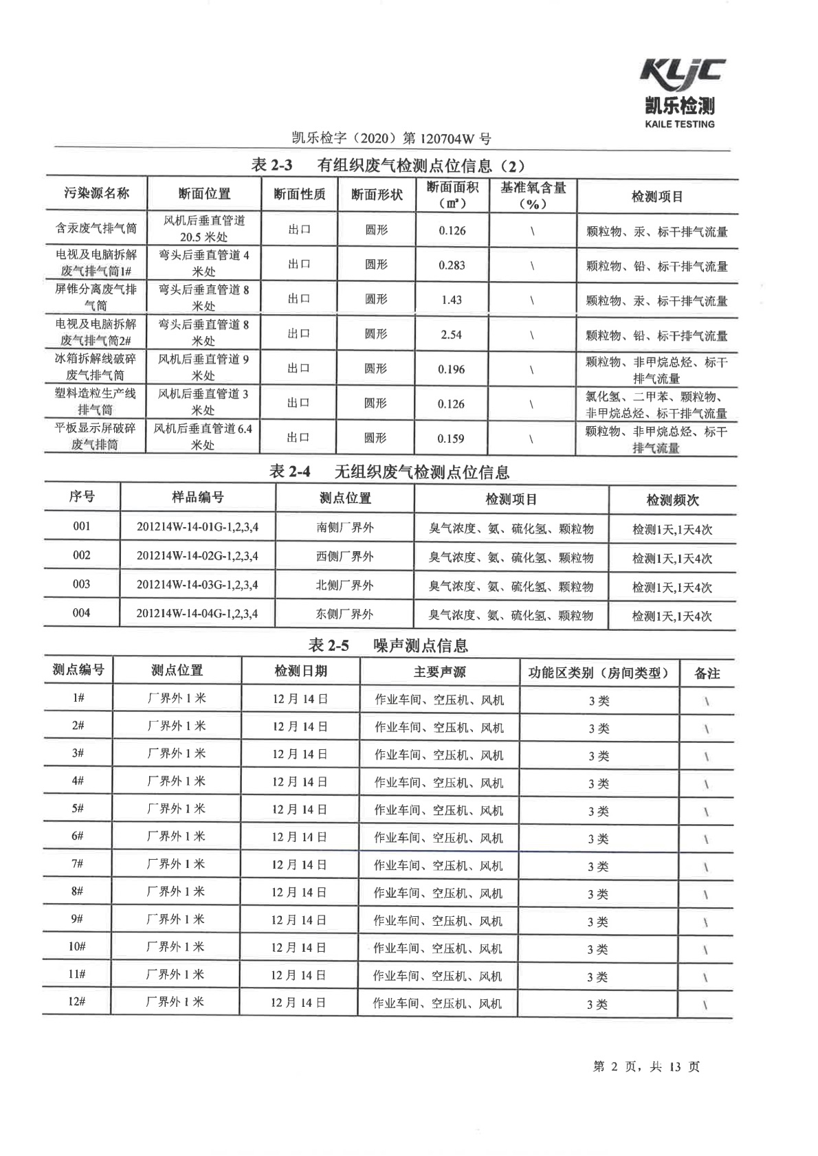 凱樂檢字(2020)第120704W號-廢氣、廢水、噪聲檢測(2020年第四季度)