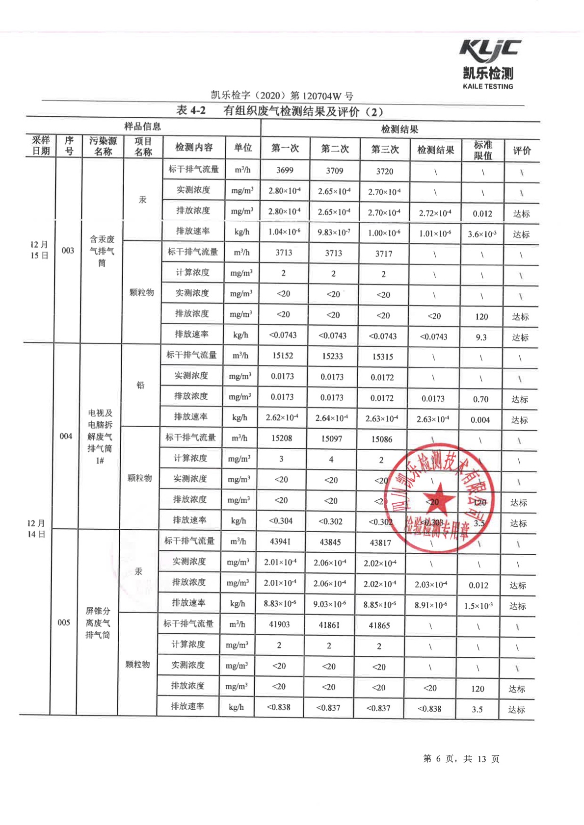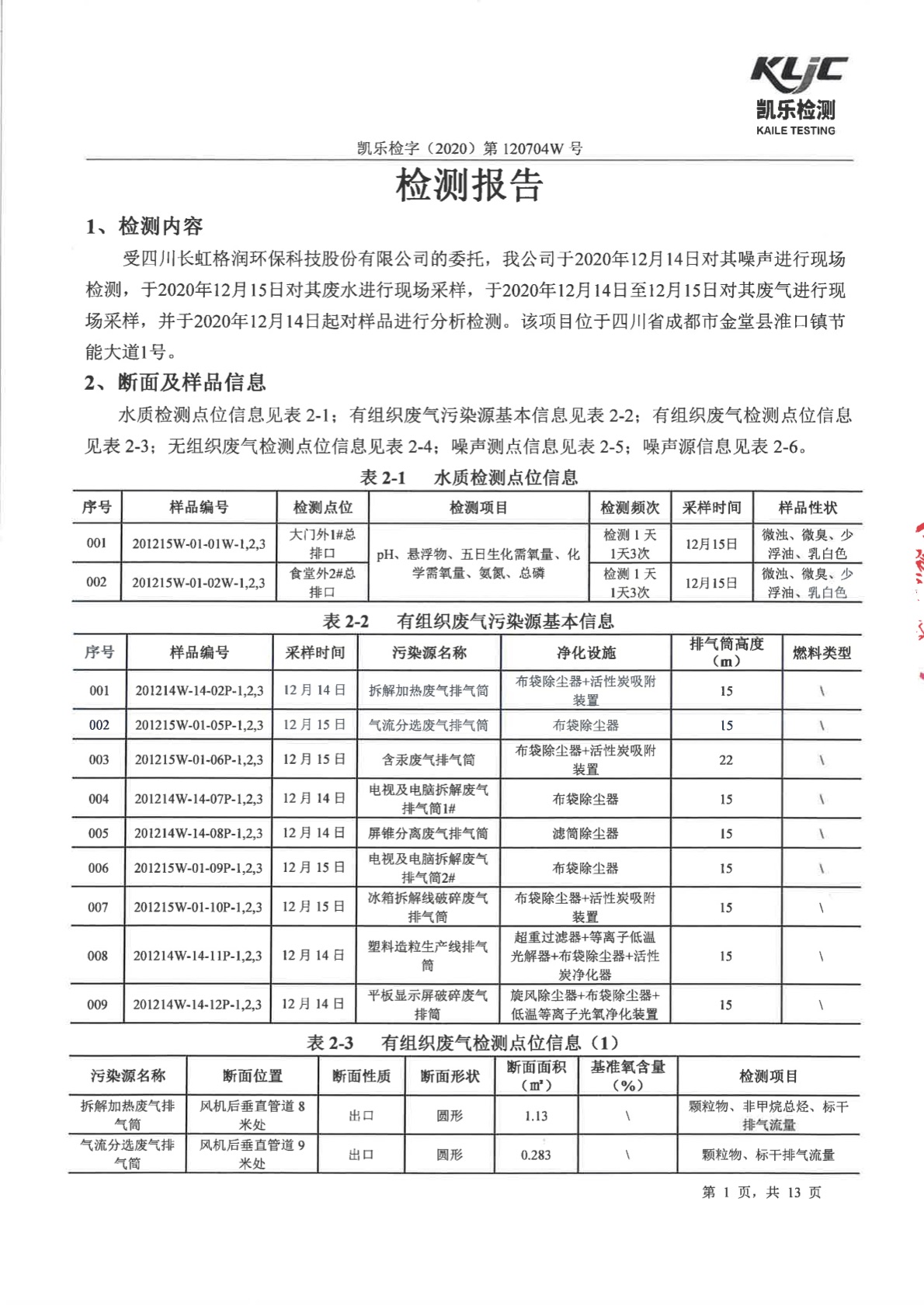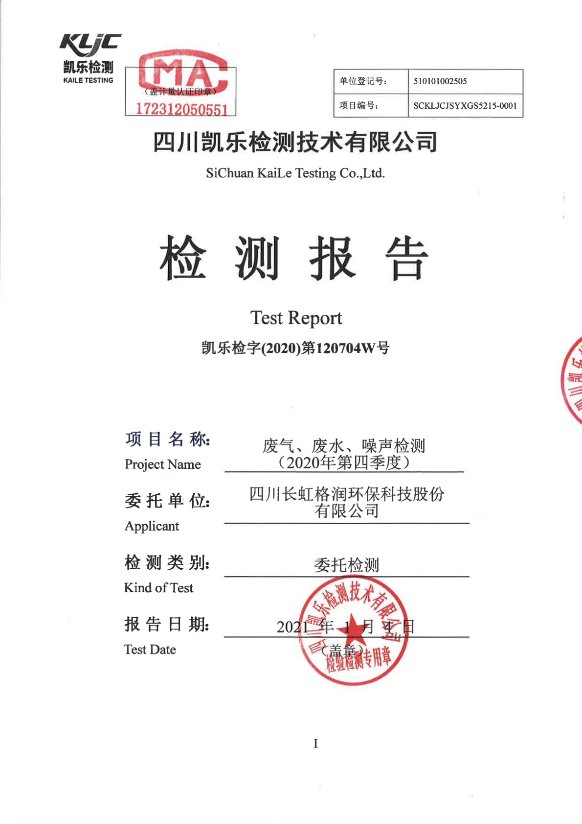 凱樂檢字(2020)第120704W號-廢氣、廢水、噪聲檢測(2020年第四季度)