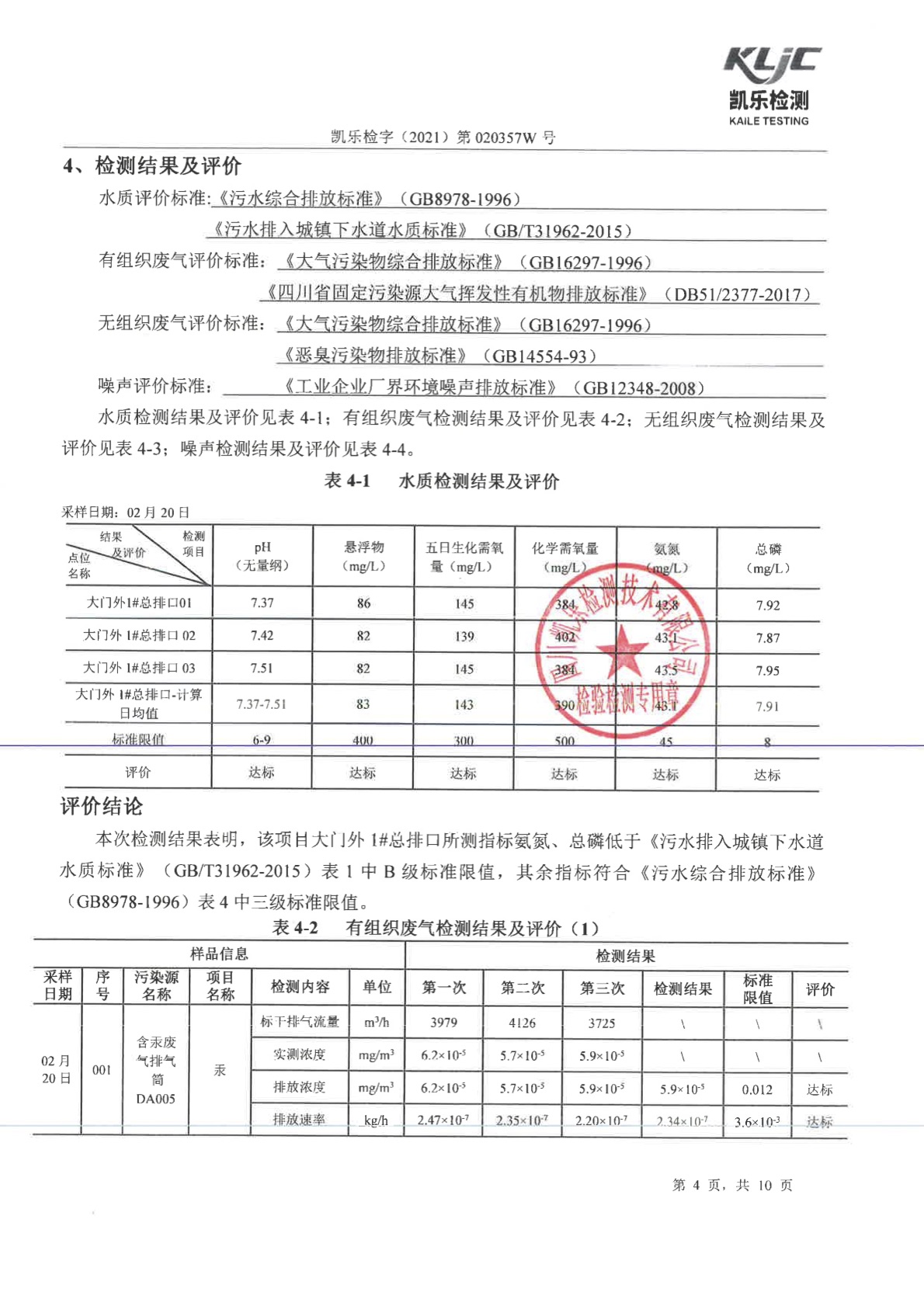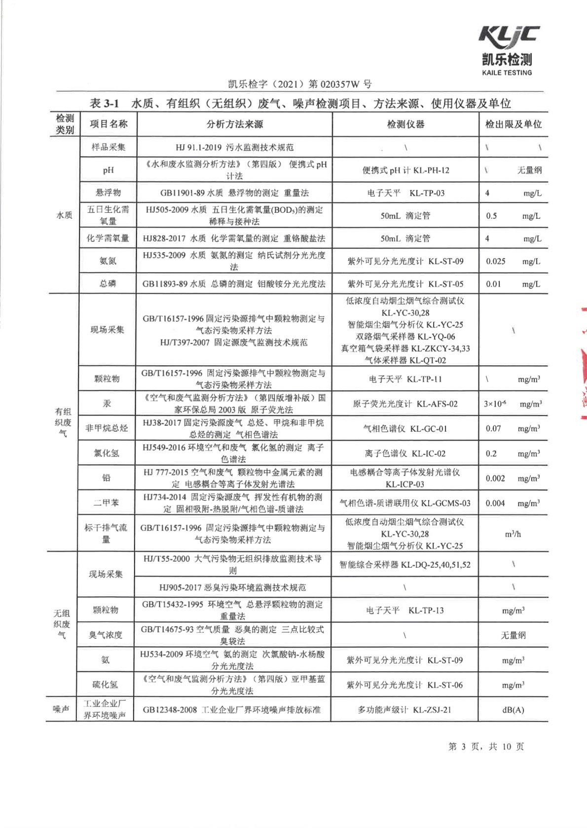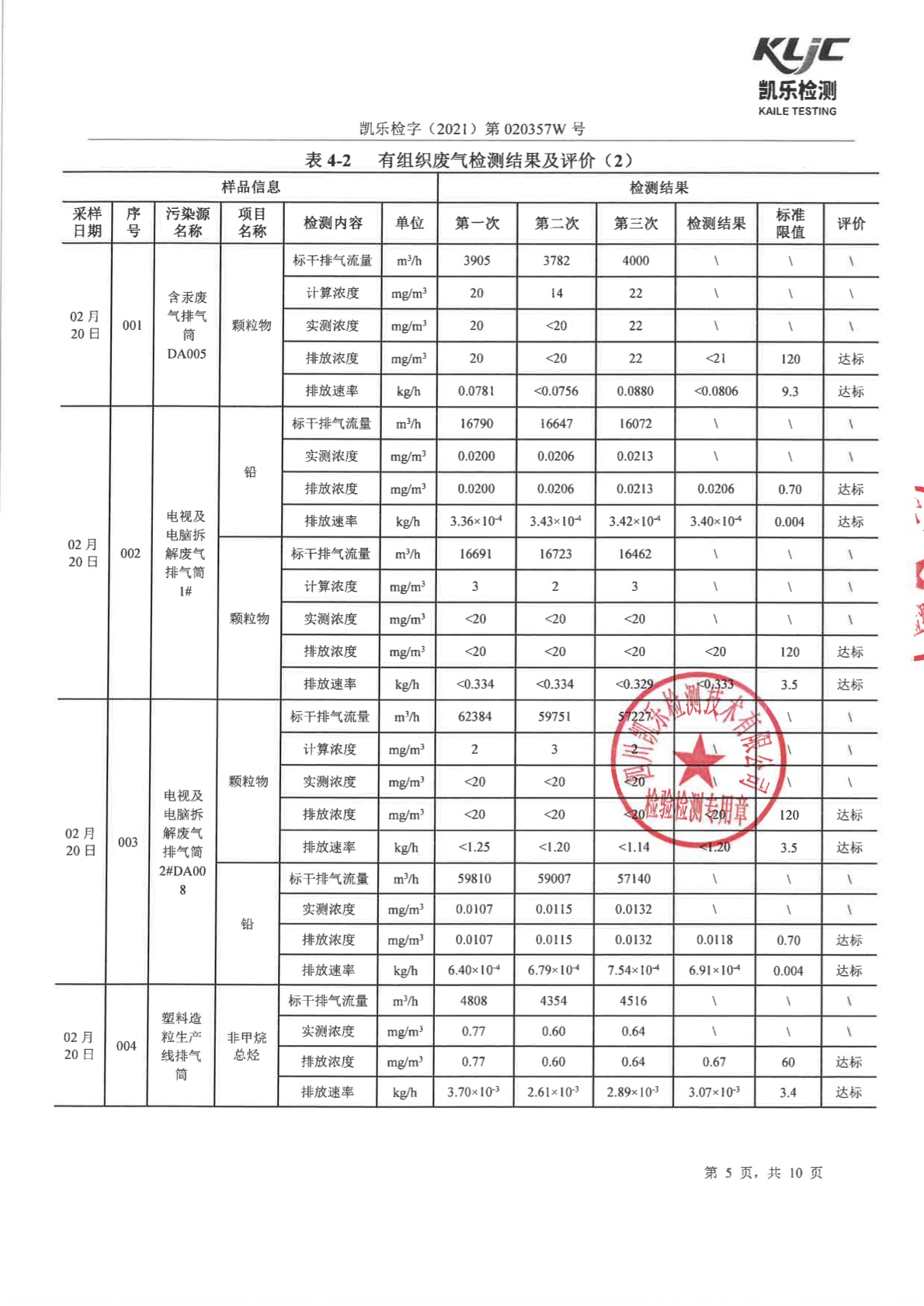 長虹格潤第1季度檢測報告 凱樂檢字(2021)第020357W號