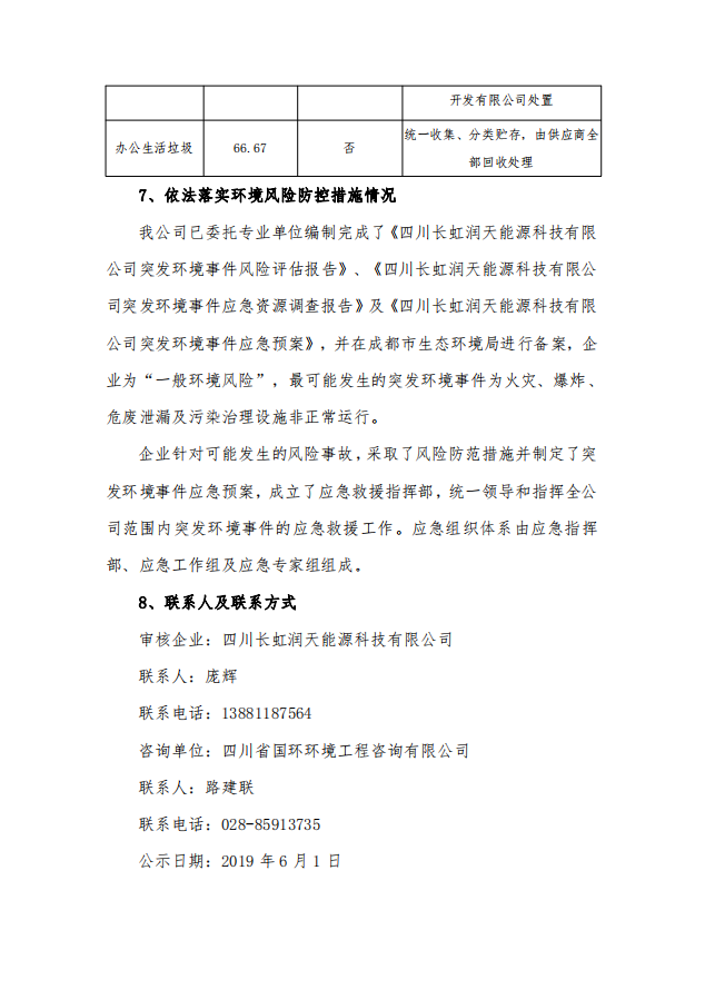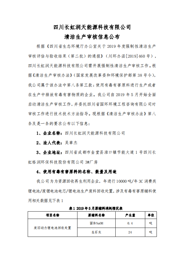 長(zhǎng)虹潤(rùn)天清潔生產(chǎn)信息公示