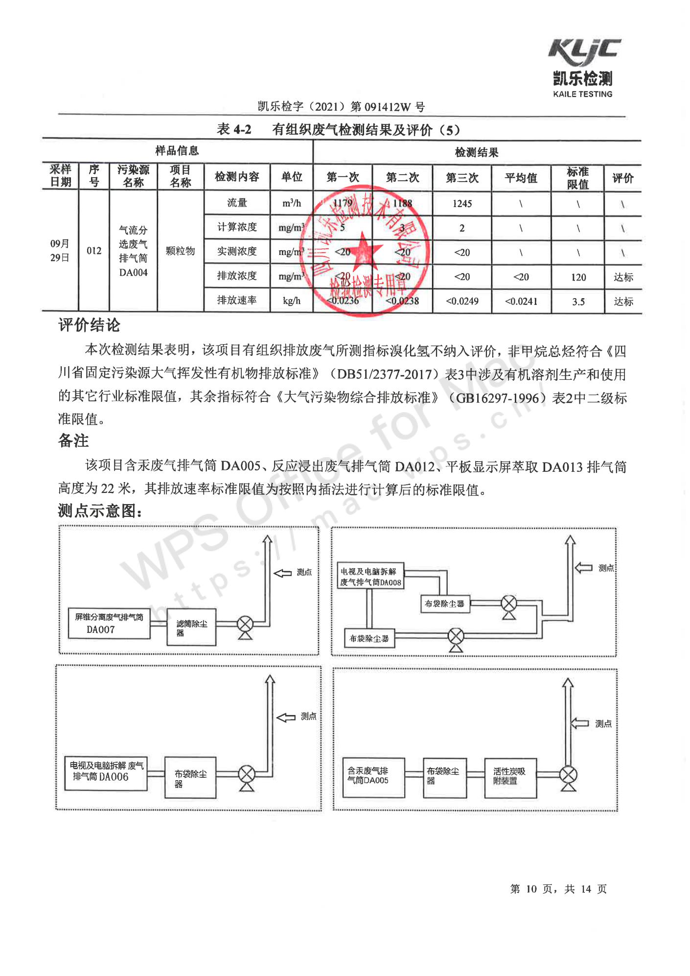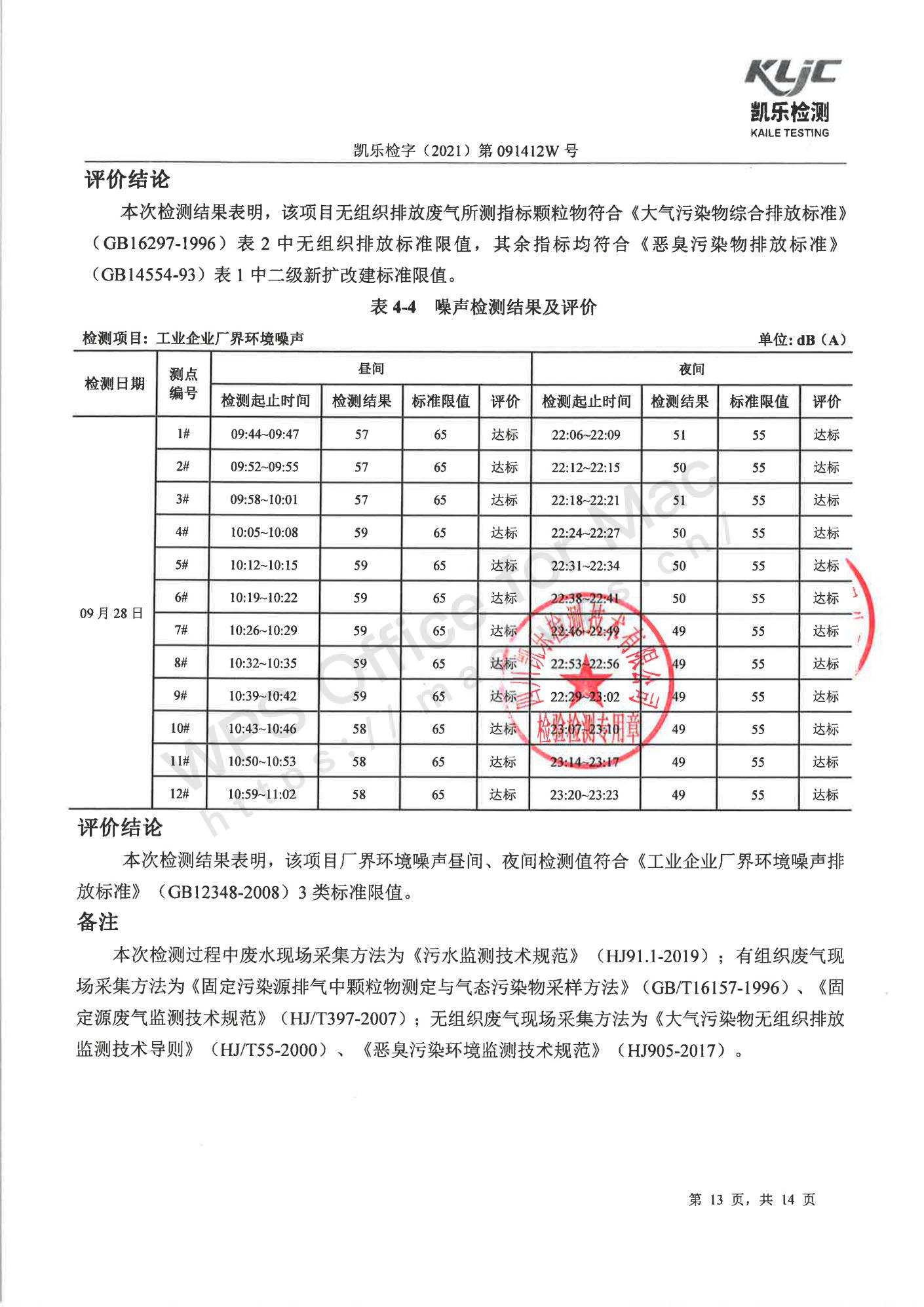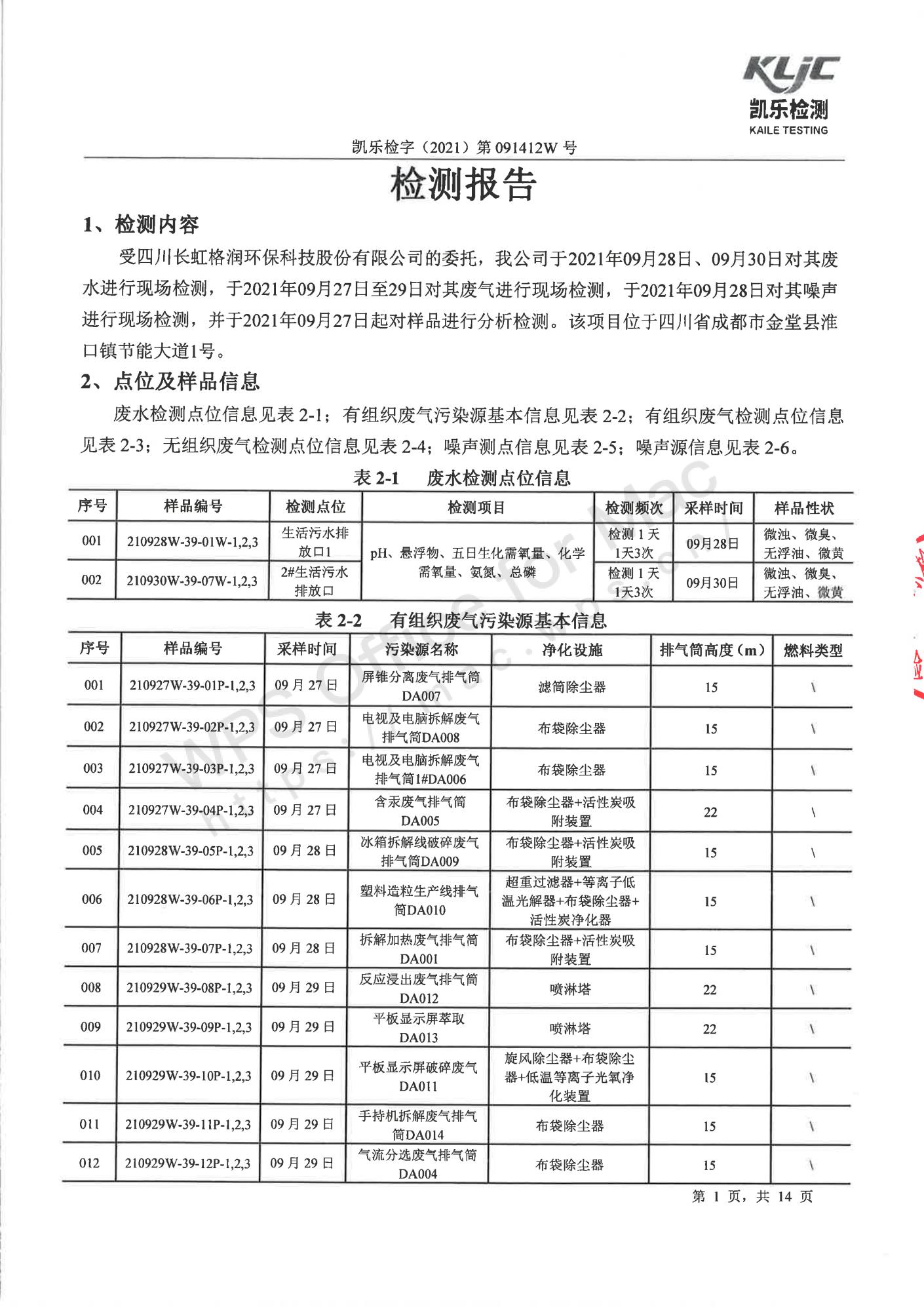 凱樂檢字(2021)第091412W號四川長虹格潤環(huán)保科技股份有限公司(廢氣、廢水、噪聲檢測(2021年第三季度))