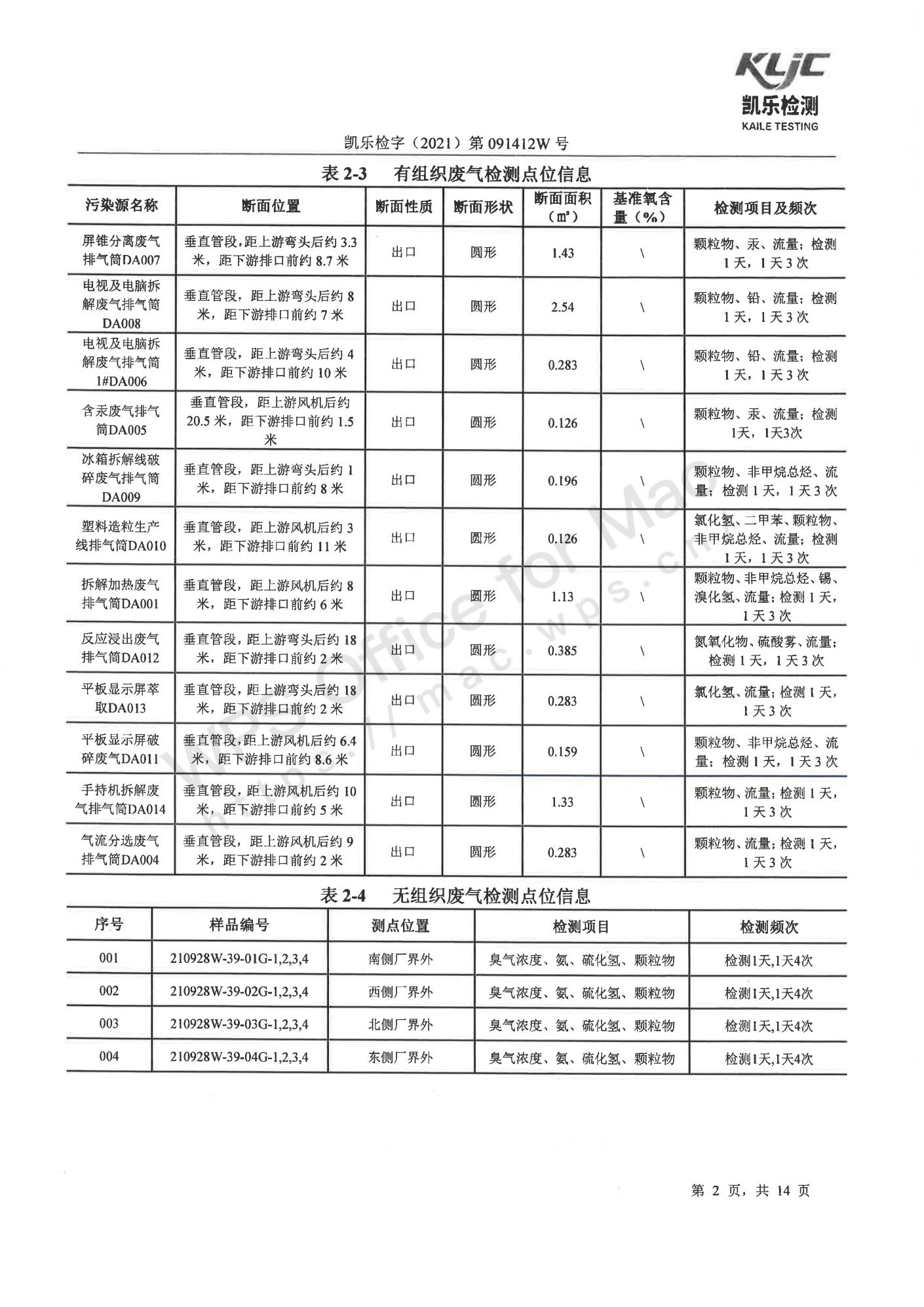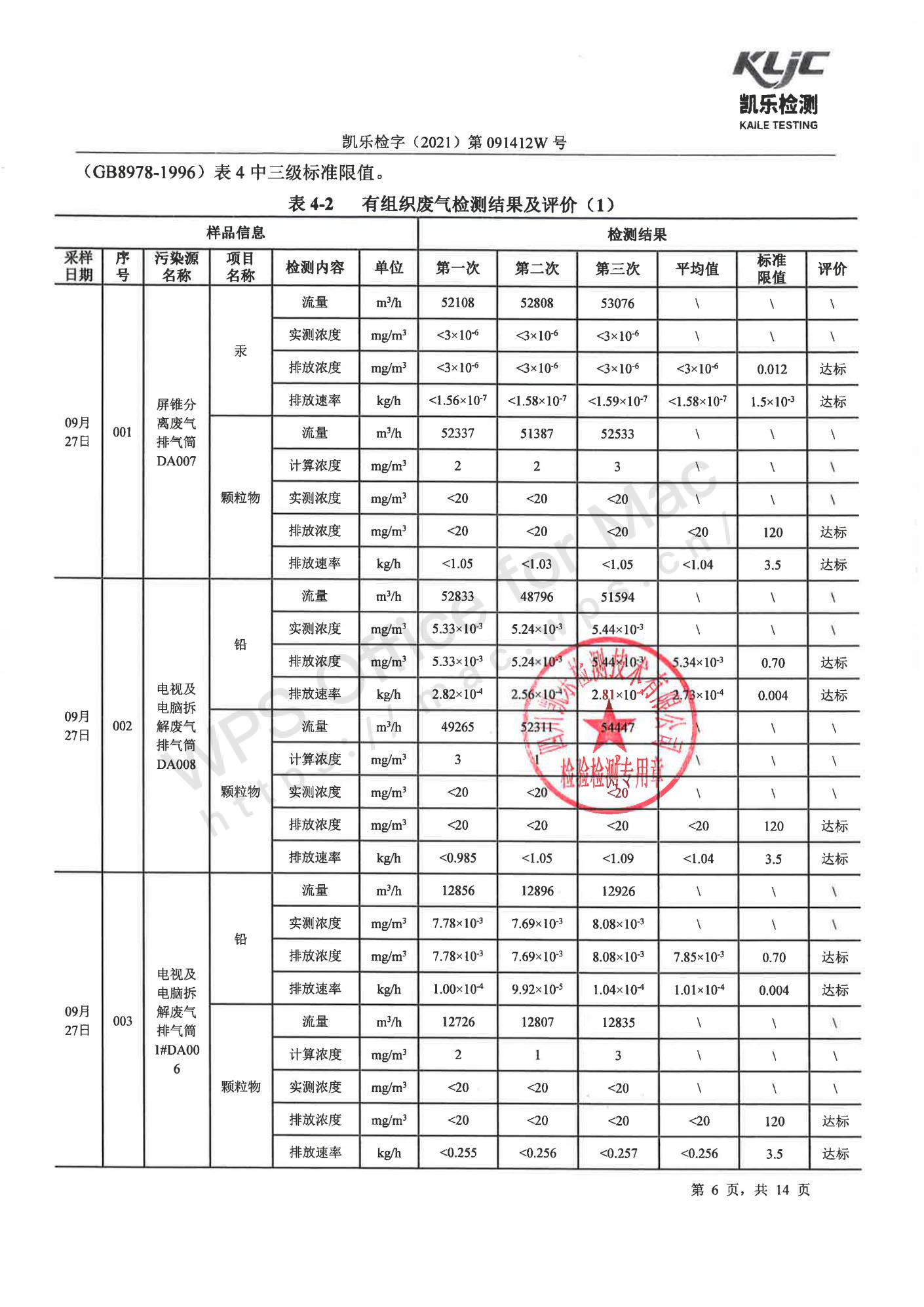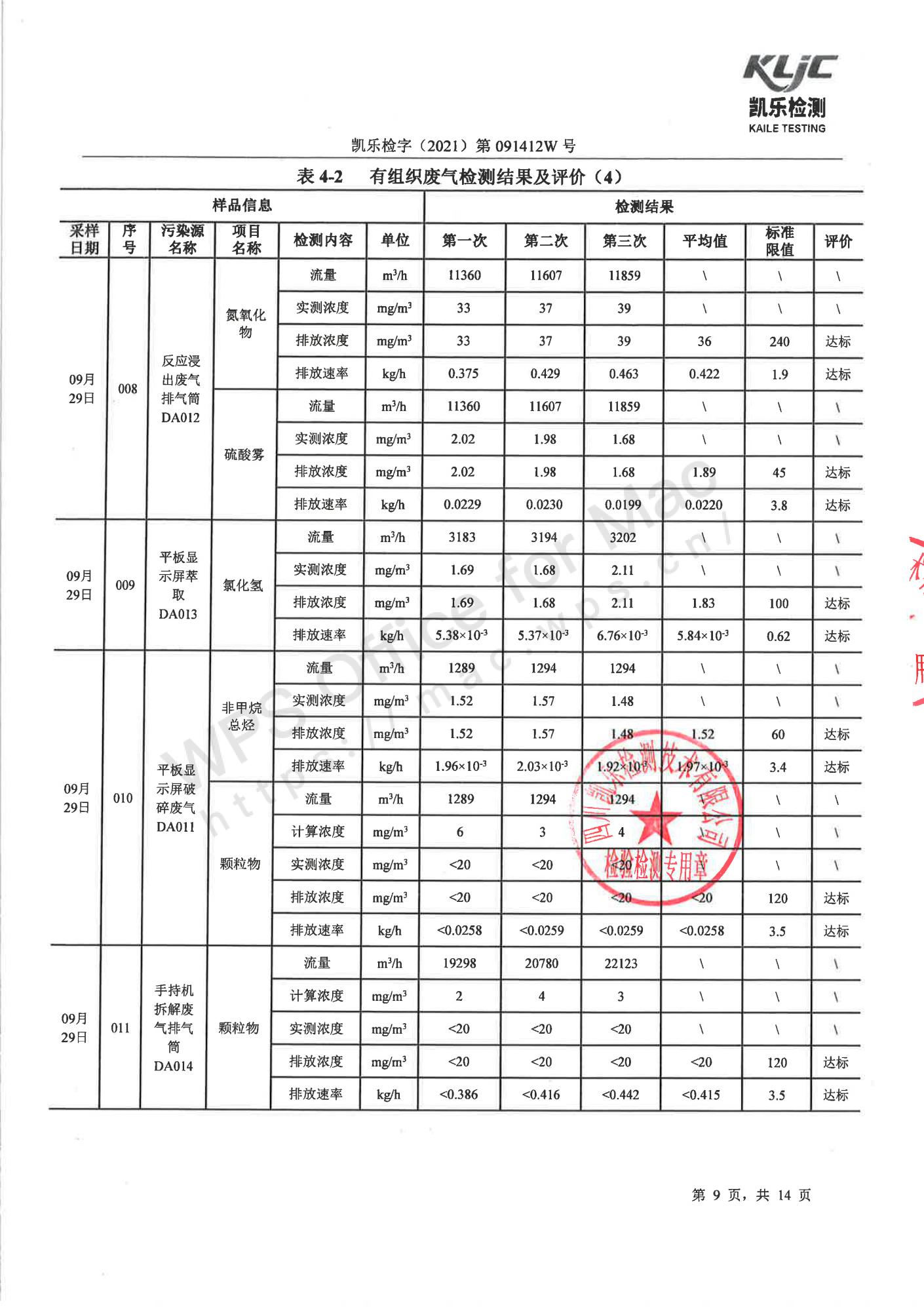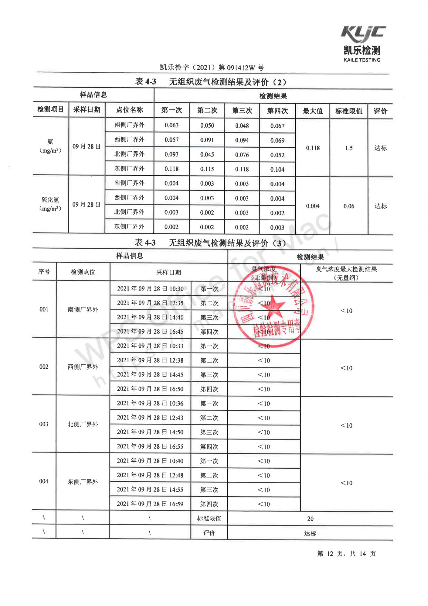 凱樂檢字(2021)第091412W號四川長虹格潤環(huán)保科技股份有限公司(廢氣、廢水、噪聲檢測(2021年第三季度))