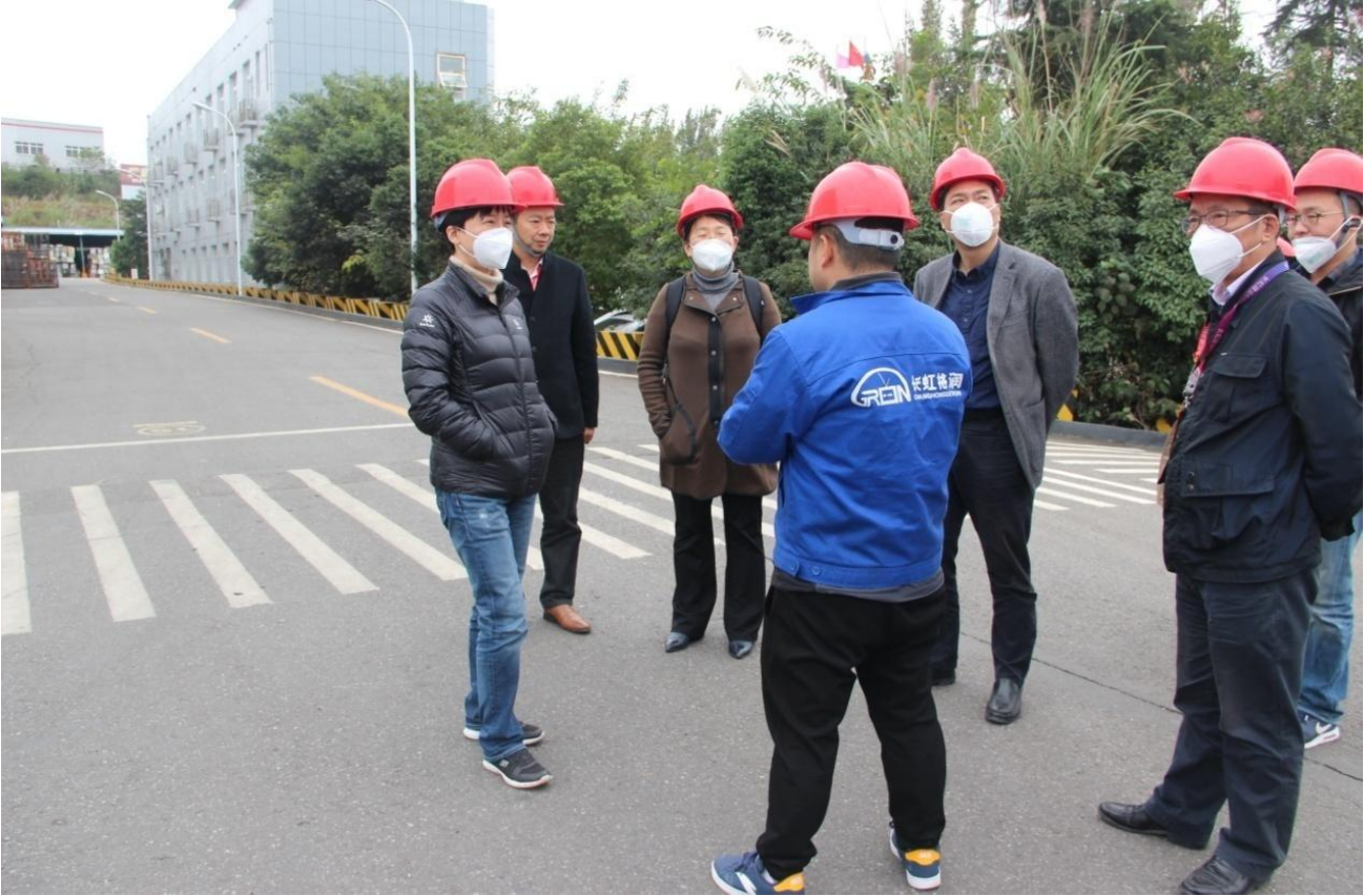 On the afternoon of November 13, 2019, Hu Jia, deputy general manager of Sichuan Changhong Electronics Holdings Group Co., Ltd. and a group of four from the Group Finance Department visited Sichuan Changhong Gerun Environmental Protection Technology Co., Ltd. (hereinafter referred to as Gerun Company) for investigation and guidance. Mo Wenwei, chairman of the company, Wu Zhangjie, general manager, Yan Shaoqing, chief financial officer, and Li Hui, general manager of Changhong Runtian, attended and participated in the event.