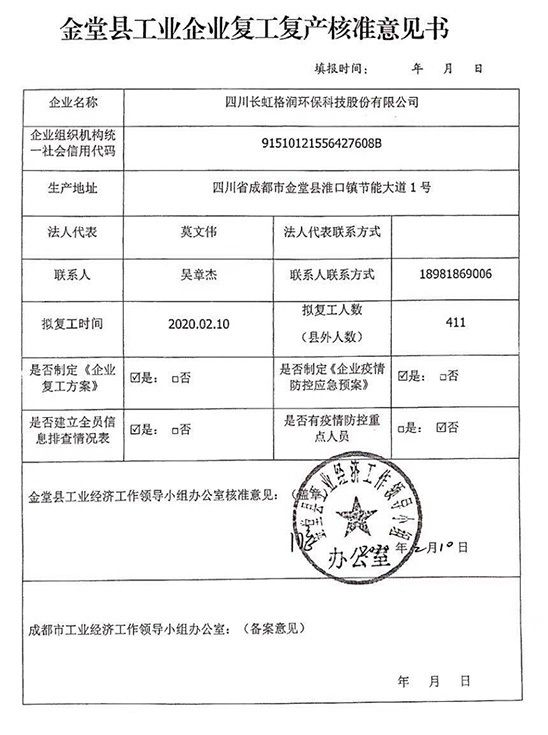 The epidemic is the order, and prevention and control is the responsibility. After the outbreak of the "new coronavirus-infected pneumonia" outbreak, Changhong Gerun Company quickly responded, immediately established an epidemic prevention and control leading group, held multiple video conferences and deployed to the site in advance Emerging epidemic prevention and control and employee health and safety are the top priority, calling on party members and cadres to play a vanguard and exemplary role, forming eight special working groups, from epidemic prevention material procurement and control, employee health monitoring, emergency treatment, park disinfection, employee dining, epidemic prevention inspection, Personnel investigation, employee care, publicity and training, etc. have layered responsibilities. Through the joint efforts of the teams, they meet the conditions for resumption of work. The resumption of work plan is reported to the local competent department. The company has filed), the company has officially resumed work on February 12, and the various productions have been promoted in batches in an orderly manner.