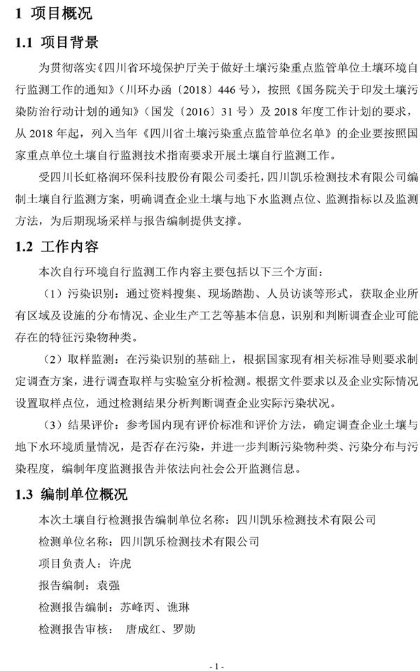 Sichuan Changhong Gerun Environmental Protection Technology Co., Ltd.-Self-monitoring report of soil and groundwater