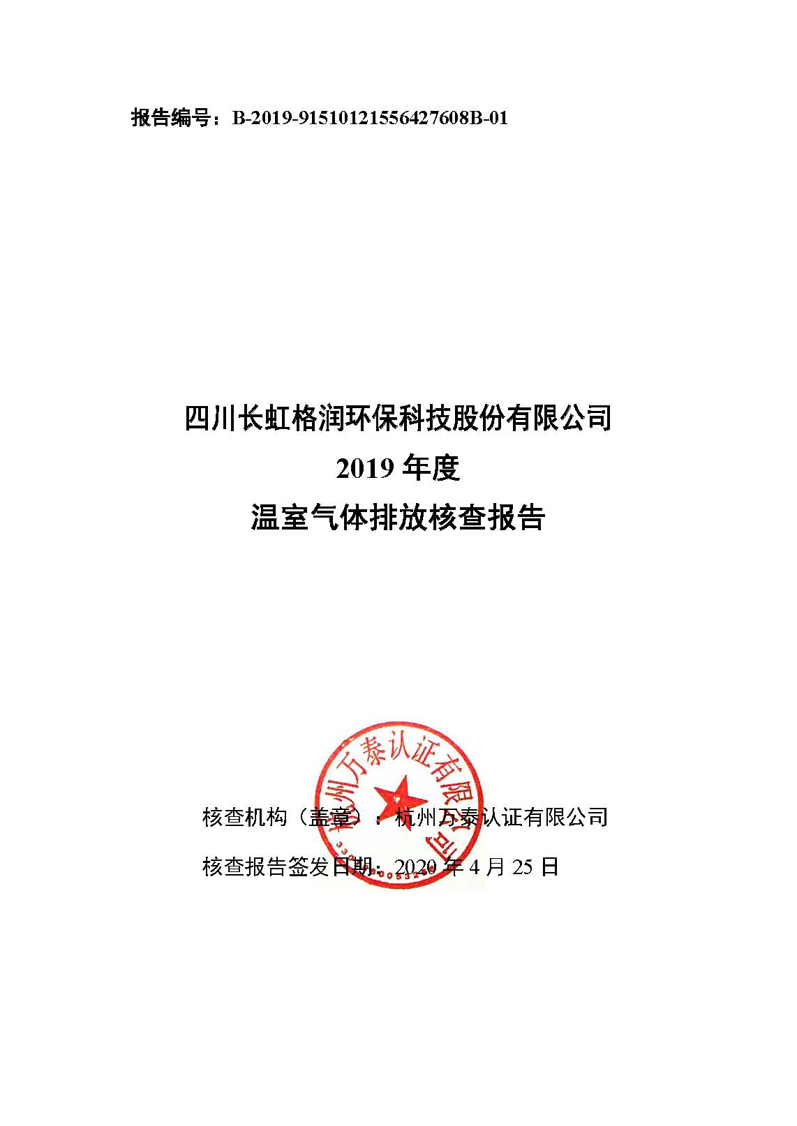 Sichuan Changhong Gerun Environmental Protection Technology Co., Ltd. 2019 Greenhouse Gas Emissions Investigation Report